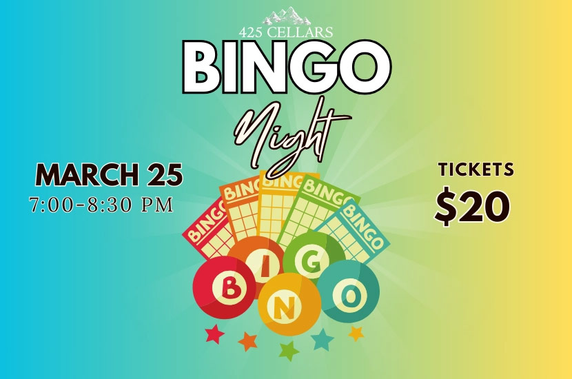Join us for a fun and relaxed Bingo & Wine Night hosted by Debbie. Guests will enjoy three rounds of bingo with prizes awarded each round, along with access to 425 Cellars wines by the glass or bottle. Whether you’re a seasoned bingo player or simply looking for a social night out, this event offers lighthearted competition in a welcoming community setting. Outside food is welcome. Advance registration is recommended.