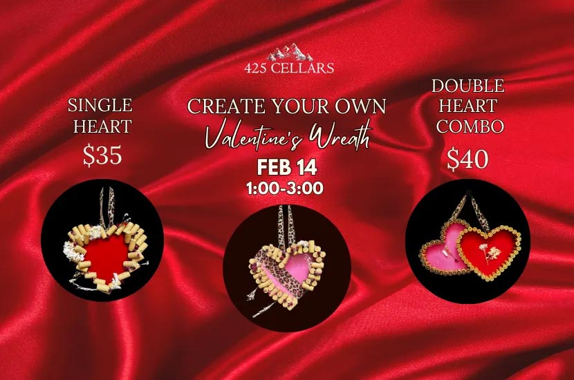 Slow down, sip wine, and get creative at this cozy holiday workshop. Guests will design a heart-shaped wreath crafted from recycled wine corks — perfect for Valentine décor, handmade gifts, or keepsakes.
