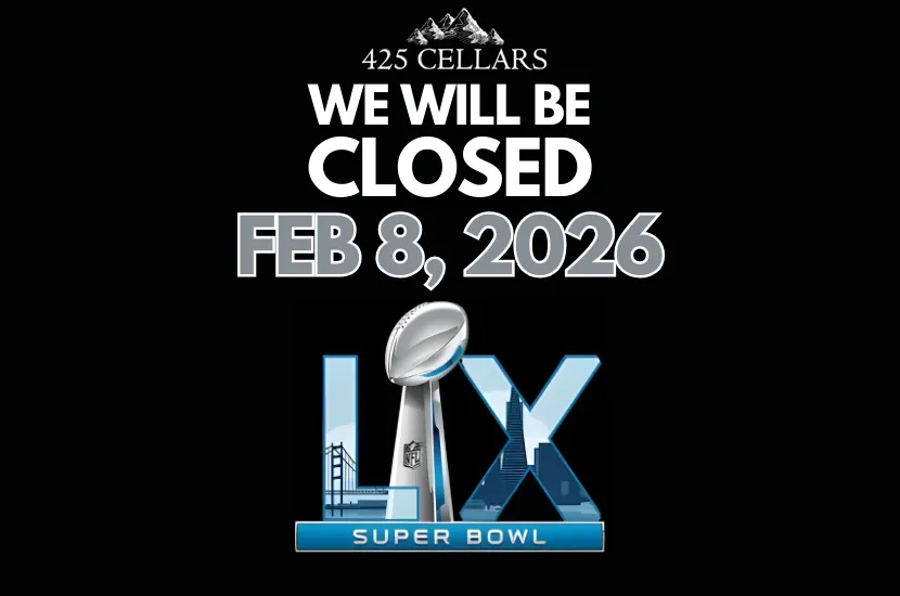 425 Cellars will be closed for the entire day so our staff can enjoy the Super Bowl with their families. We appreciate your understanding and look forward to reopening on Thursday, February 12.